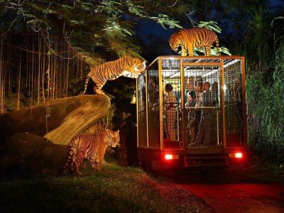 Enjoy walking safari, night safari Journey with cage while Tiger jumping to the cage, Dinner will provide at Tsavo lion view restaurant and rhythm of Africa Show (Fire dance) Finish Night Safari