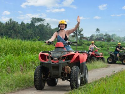 Get lunch at meeting point then prepared for ATV ride through the lush green garden, small road with rice field view, small river, cave and very challenging mud fun trek.